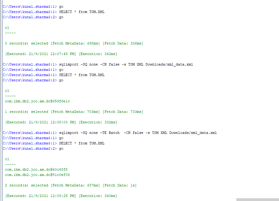sqlimport -SQ none -CN false -s TOM TOMXML xml_data.xml