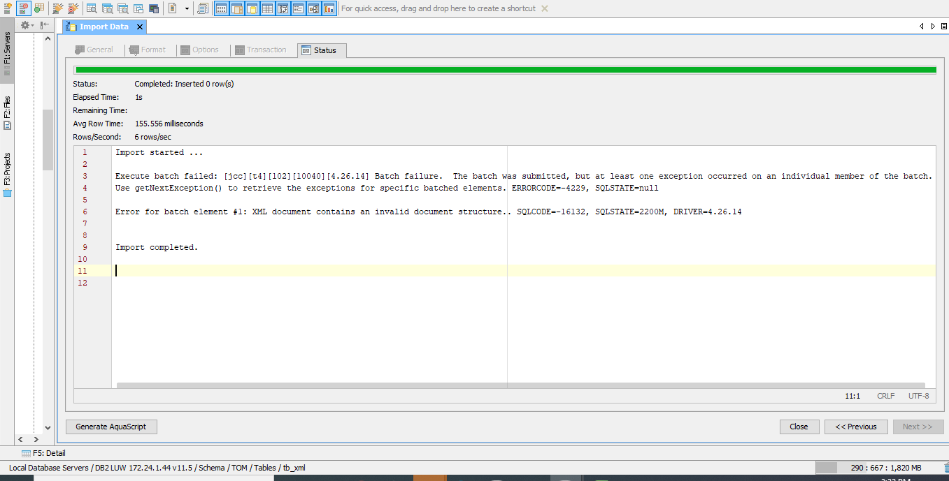 This issue is for all the database servers which have xml datatype for example DB - SQL Server, I wrote the steps to reproduce for DB - DB2 LUW
