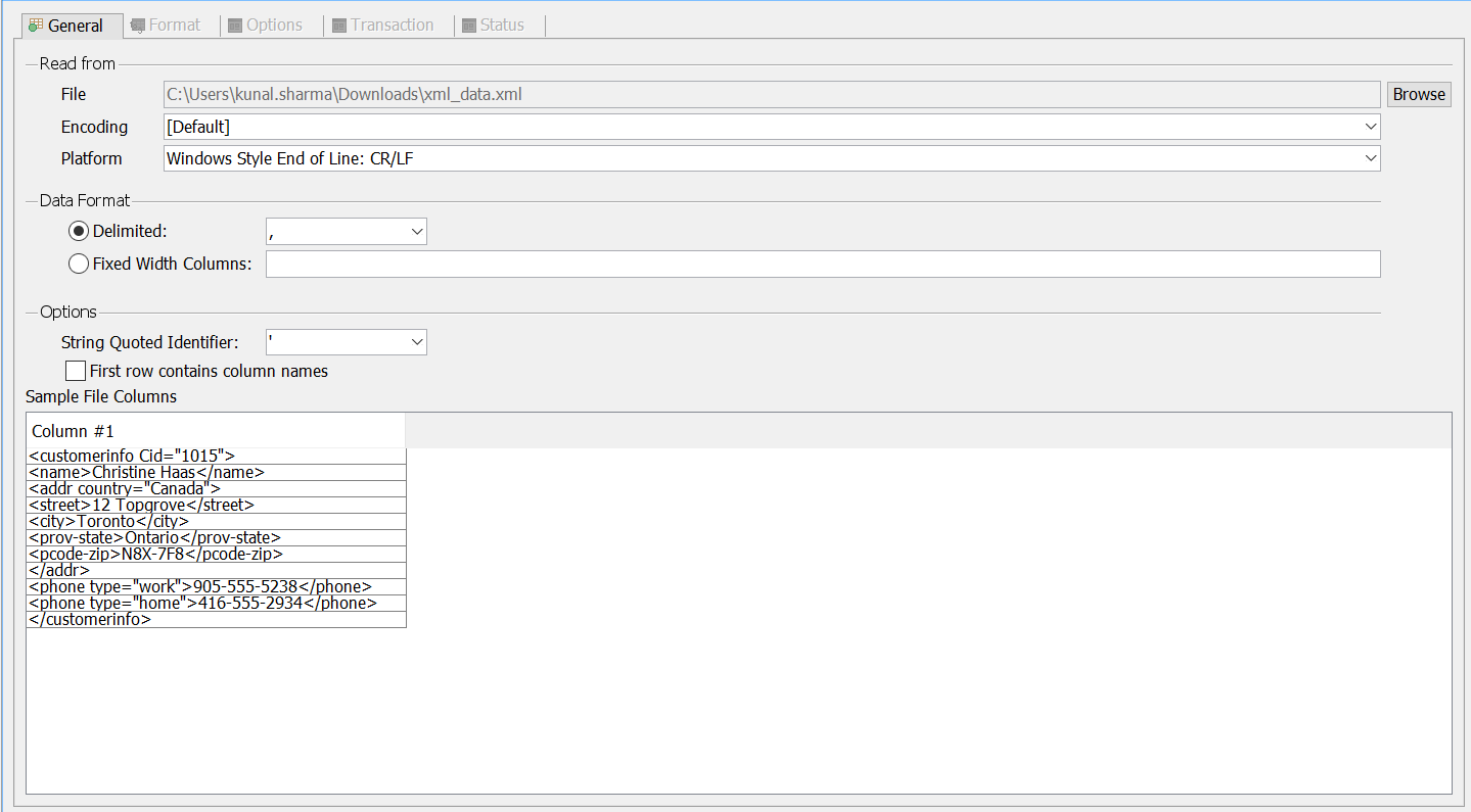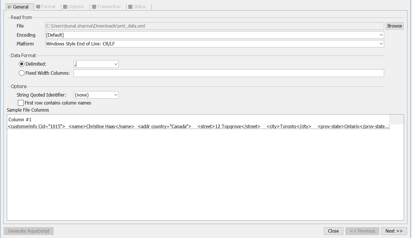 1. SQL Import when String Quote Identifier=Null (Delimiter and all other settings would work as expected, only change is if String Quote Identifier=null and file type is .xml, then we will read the file as a whole)