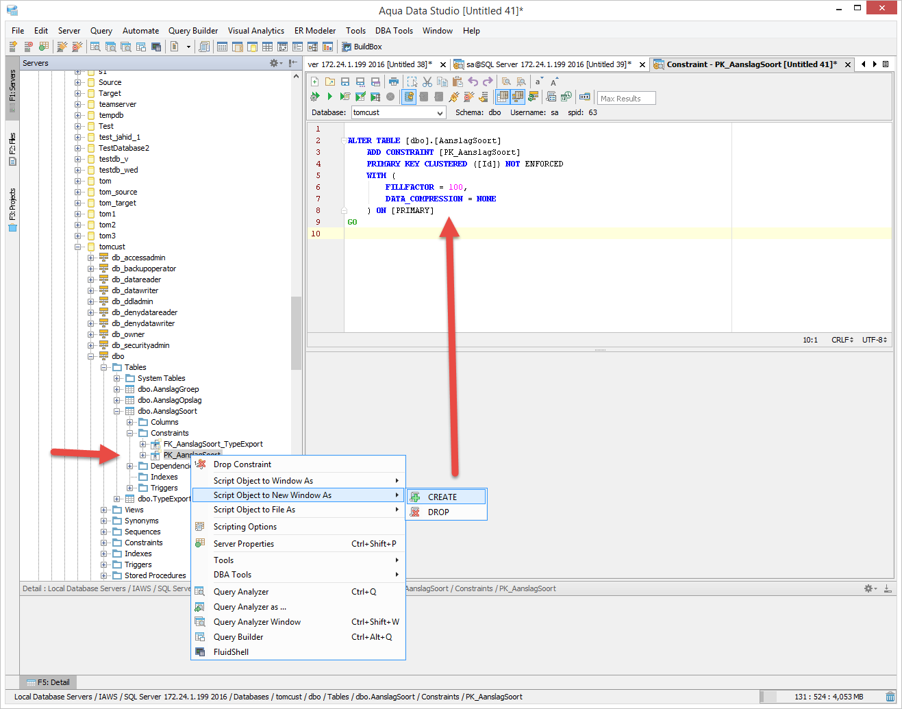 Hmm... Let's see if the database actually got updated or is it an ADS display problem. When you get the empty fill factor for your test scenario, please run the query below and see if the database was updated. You can run the query before and after the import also to see if the constraint was changed. Another way to test the constraint is to just create the constraint in a new query analyzer window. Since I can't seem to recreate the issue on my machine, this should help identify where the problem is.