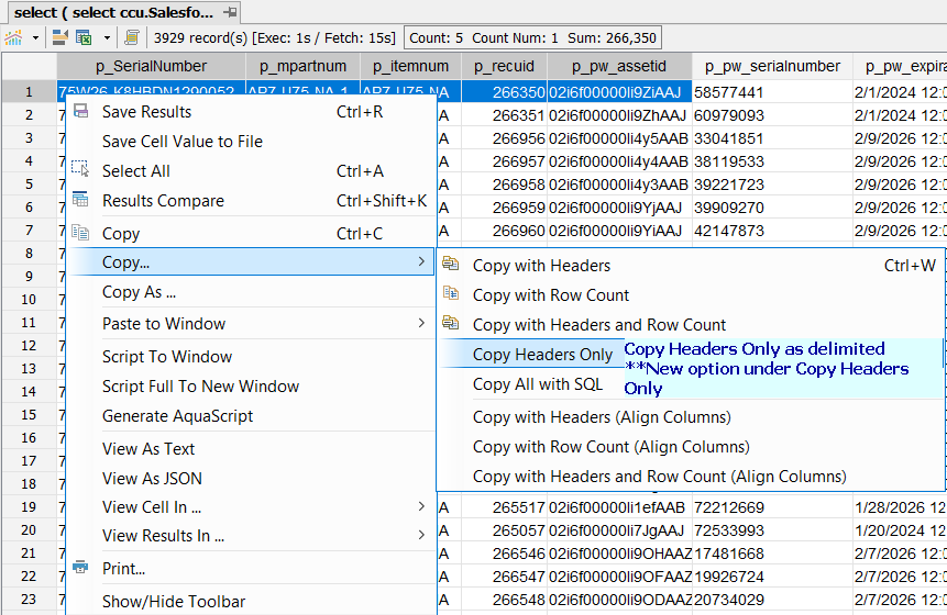 See attached screen capture for example, This would be very helpful to be able to quickly select specific columns for sql statement!!